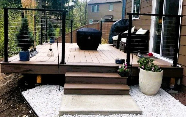 Composite TimberTech Azek decking with Stainless steel cable/metal railing in Kent, WA